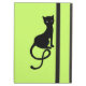 La caisse élégante d'air d'iPad de chat avec une belle illustration d'un chat noir mauvais aimable avec rougeoyer observe sur une montre de nuit sur l'arrière - plan vert. Cette conception mauvaise de chat fera appel à un amoureux des chats qui aime les chats noirs et fera un grand cadeau de Halloween.