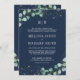 Eucalyptus All in One QR Code Navy Formal Wedding Invitation