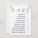 Alphabetical guest seating chart cards with subtle bright green eucalyptus sprigs. The alphabetical letters are listed at the top with the guests' names in alphabetical order below with their corresponding table number. For each card that you want to create, edit the card, then add it to your cart. Go back to the original product again, and edit your second card with names, then add it to your cart. Do this for each card that you require.