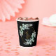 Eucalyptus and gold on black personalized wedding paper cups