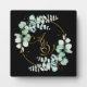 Eucalyptus and gold on black personalized wedding plaque