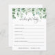Have your shower guests fill out these adorable wishes for baby cards at your baby shower. Featuring an illustration of greenery and eucalyptus. Personalize the with Mommy-to-be's name and shower date.