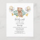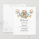Simply create a cute woodland animal theme baby shower budget invitation with this template featuring a cute bear, balloons, buntings and leafy eucalyptus botanical succulent.