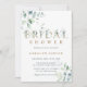 This wedding bridal shower invitation features painted watercolor eucalyptus and green leaves with botanical gold letters.