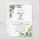 Watercolor silver dollar and flowering willow eucalyptus branches, wedding invitation. Customize text, font style, colour and size.