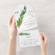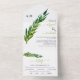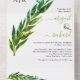 Eucalyptus branch in green tones all in one wedding invitation. A lovely design for your wedding featuring a branch of eucalyptus with leaves. The RSVP card can be detached.
