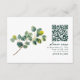 This RSVP card combines modern convenience with natural elegance. The card features a stylish white background, contrasted beautifully by a delicate eucalyptus branch in soft green tones. A prominent QR code is placed to the right, offering guests a simple, tech-savvy way to respond, while the "please rsvp" script adds a personal, inviting touch. The clean, minimalist layout makes this card ideal for contemporary weddings or events that blend modern technology with natural elements.