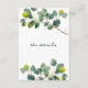 Add a graceful, nature inspired touch to your wedding stationery with this elegant “The Details” RSVP enclosure card. On the front, lush watercolor eucalyptus branches frame a beautifully handwritten script, creating a serene botanical look that perfectly captures a garden greenery theme. The design blends simplicity and sophistication, with soft green leaves and gentle brushwork that evoke the fresh beauty of a botanical wedding.
