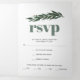 Eucalyptus branch with leaves winter tri-fold wedding invitation. A lovely design for your wedding. The cover features cascading branches of viridian green eucalyptus leaves and the names of the couple. The inside panels include details of your wedding and RSVP which can be detached. There is a photo of the couple on the outside back.
