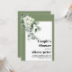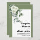 This wedding shower invitation showcases a white frame surrounded by borders in a calming sage green hue and eucalyptus branches adorned with delicate white flowers positioned elegantly in the upper left corner and. The text on the invitation is displayed in a striking bold typography, adding a touch of sophistication to the overall look. The sage green borders frame the invitation on three sides, enhancing the natural and organic feel of the design.