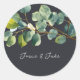 Élevez les détails de votre mariage avec cet autocollant magnifiquement conçu, avec une illustration gracieuse de style aquarelle d'une branche d'eucalyptus et des feuilles verts luxuriants. L'élégant motif botanique crée un look serein inspiré du jardin, tandis que des accents feuillus doux et des nuances nuancées de vert évoquent le raffinement naturel et l'amour intemporel. Personnalisez l’autocollant avec les noms du couple heureux dans un script moderne et élégant, parfaitement encadré contre l’arrière - plan sombre raffiné. L'aménagement arrondi minimaliste fait que le joli cadre vert occupe le devant de la scène, ajoutant une touche de chic et de sobriété aux invitations, aux faveurs ou aux gestes. Inspiré par la tranquillité et l’art de la nature, cet autocollant est idéal pour les mariages de jardin, les événements à thème de verdure ou toute célébration spéciale qui valorise la simplicité romantique et élégante. Réalisée avec soin pour une beauté sans effort, elle offre un mélange harmonieux de détails d'aquarelle délicats et de design sophistiqué transformant chaque détail en une pièce durable de votre histoire mariage.