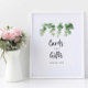 "Cards and Gifts" sign or poster for Wedding day, with watercolor eucalyptus foliage design.