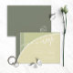 With a colour palette from ivory to spring green and dark moss, this wedding collection features a handwritten script font and eucalyptus leaf accents to add that wonderful modern touch. The RSVP card shown here in horizontal format, has all the above with a striking striped pattern in shades of green topped by an elegant curved shape in coordinating flax gold. Add your preferred text using the provided template. Search ID901 to see other colour choices and coordinating pieces for this unique wedding collection.