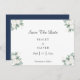 This eucalyptus cotton white modern wedding save the date is perfect for your modern wedding. This design features eucalyptus greenery with white cotton fluffs on a white and navy background and black calligraphy script in a modern classic traditional layout. Please feel free to reach out to us with any questions about this design.