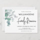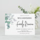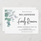 This floral invitation is decorated with green watercolor eucalyptus and stylish script typography.