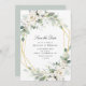 greenery wedding theme with eucalyptus foliage , white watercolor flowers and a gold frame. The text and colours can be edited.