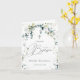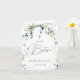 Baby Baptism/Christening Greeting card. This design features an illustration of greenery foliage and eucalyptus leaves in watercolor style. Above the leaves - confetti adorns the top of the card (their images can be removed). There is an image of a Cross underneath the leaves.