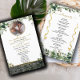 Grab yourself a unique wedding program that you can fully customize to make it special and unique to your wedding. the design comes with a frame where you can put your picture/photo with your man or with your woman, the frame that comes with beads will complement the photo of the couple inside it and will make the card look so elegant. Elegant Eucalyptus Greenery Foliage Botanical Custom Photo Wedding Program.