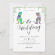 If you and your partner are dino lovers, this fun and stylish dinosaur-themed wedding invitation is the perfect way to celebrate your big day! Featuring a playful T-Rex bride and groom in a vibrant mix of blue, pink, purple, green, teal, and peach, this invitation combines your love for dinosaurs with elegant botanical elements. The watercolor eucalyptus foliage and greenery bring a fresh, natural touch, while the funny T-Rex illustrations add the perfect amount of whimsy and charm.
