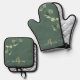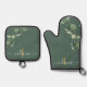 Eucalyptus Foliage Monogram Script Elegant Oven Mitt & Pot Holder Set