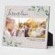 This beautiful eucalyptus design has the words Forever love and space for 3 photographs. It's the perfect way to put your favorite wedding photographs on display.