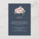 This eucalyptus garden rose floral hotel enclosure card is perfect for a rustic wedding. The design features pink, blush, yellow rose flowers with eucalyptus leaves in a dark navy blue background.