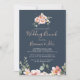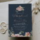 This eucalyptus garden rose floral wedding brunch invitation is perfect for a modern event. The design features pink, blush, yellow rose flowers with eucalyptus leaves in a dark navy blue background.