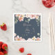 These eucalyptus garden rose floral wedding paper napkins are perfect for a modern event. The design features pink, blush, yellow rose flowers with eucalyptus leaves in a dark navy blue background.