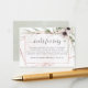 Baby shower book request cards featuring anemone flowers and eucalyptus leaves in a rose gold geometric frame.