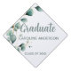 Modern eucalyptus greenery graduation mortarboard with delicate gold accents, designed to add a cohesive and stylish touch to your graduation ceremony. A versatile and customizable accent for high school or college graduates.