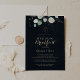 This eucalyptus gold floral blue wedding breakfast invitation is perfect for a simple morning after wedding get together breakfast. This artistic design features hand-drawn gold floral and watercolor eucalyptus green foliage, inspiring natural beauty.