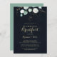 Eucalyptus Gold Floral Blue Wedding Breakfast Invitation