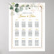 Wedding 12 Tables Seating Chart Poster features an illustration of watercolor eucalyptus leaves and gold foliage with gold effect confetti. You can change the Poster size according to your requirements.