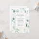 Simple Wedding invitation featuring watercolor eucalyptus leaves with a gold accent border. Customize with your information for the wedding day. Click "click to customize further" to change the font style, size or colour.