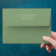 Une enveloppe verte simple pour convenir à cette collection (Parties scintillant d'or Eucalyptus - Vert ) où est également vierge sur le côté du destinataire. Je vous donne le lien, mais vous pouvez également le vérifier dans ma collection, pour trouver un étiquette de adresse prêt habillé avec le même design mais vierge avec des lignes d'or pour coller au côté de l'adresse afin que vous puissiez écrire à la main sur elle pour chaque destinataire. Suivez le lien pour vérifier si cela fonctionne pour vous : https://www.zazzle.com/eucalyptus_gold_glitter_green_wedding_label-256122828949113442