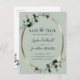 Eucalyptus Gold Metallic QR Code Sage Wedding Save the Date Postcard... Our sage green luxe botanical Save the Date postcard features a gold metallic oval frame embellished with emerald-hued eucalyptus leaves creating a natural looking border for the announcement text within. The back of the card contains your return address, wedding website information, and an example QR code template you can replace simply by typing in your wedding website URL. All example text on both sides of the card - and the QR code - can be easily revised with your own details on the personalization template.