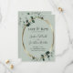 Eucalyptus Gold Metallic QR Code Sage Wedding Save the Date... Our sage green luxe botanical Save the Date card features a gold metallic oval frame embellished with emerald-hued eucalyptus leaves creating a natural looking border for the announcement text within. The back of the card contains your wedding website information and an example QR code template you can replace simply by typing in your wedding website URL All example text on both sides of the card - and the updated QR code - can be easily revised with your own details on the personalization template.