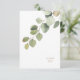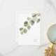 Carte de remerciements mariage. Texte Eucalyptus Foliage Gold. Message à l'arrière. Fond blanc.