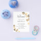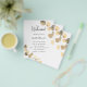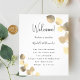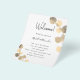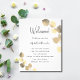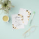 A modern, elegant, wedding program, timeline. White background, decorated with golden eucalyptus, sprigs. Personalize and add your names and wedding details. Black colored letters. If you have more text it's possible to reduce the line space and also add text on the back.