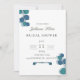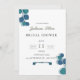 The elegant and rustic design features green watery leaves with moody dark blue and eucalyptus with a modern bohemian forest feel.