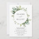 This wedding invitation features painted watercolor eucalyptus, green leaves and circle frame. For more advanced customization of this design, Please click the "Customize further" link. Matching items are also available.