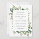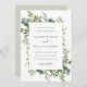 This wedding invitation features painted watercolor eucalyptus, green leaves and rectangle frame. For more advanced customization of this design, Please click the "Customize further" link. Matching items are also available.