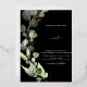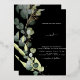 Eucalyptus Verdure et huile d'or Aquarelle botanique Succulente Emerald Green Spring Wedding Invitations on Black arrière - plan - comprend une belle et élégante typographie script avec feuilles botaniques modernes et verdure pour la célébration spéciale de mariage.