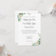Classy white back invitation with a eucalyptus greenery and a white rose.