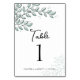 This modern boho wedding table number features eucalyptus greenery and a mix of serif and script fonts. Customize the wording for your special occasion. Complementary items are also available.