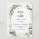 Elegant and modern spring / midsummer save the date card features a bouquet of soft watercolor greenery lush green leaves / botanical leaves / eucalyptus and gold geometric frame . Please find more matching designs and variations from my store. And feel free to contact me for further customization or matching items.