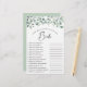 Bridal shower "how well do you know the bride" game sheet featuring elegant sage green eucalyptus greenery watercolors and "Bride" in a stylish script. Personalize the questions and add the bride-to-be's name and shower date on the back.