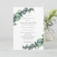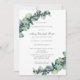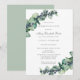 A sage green eucalyptus sprig and navy blue privet berries decorate the top and bottom of this chic minimalist botanical design.