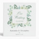 Keep your wedding details and plans organized in this wedding planner binder. The design features a border of lush greenery, eucalyptus and light green flowers with custom text for the names of the bride and groom and their wedding date.