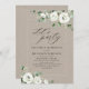 Modern chic watercolor white floral eucalyptus greenery and trendy "let's party" script on kraft paper background, with couple's monogram on the back, elegant and stylish, great for rustic botanical wedding party, engagement party, vow renewal party, or other celebrate events.